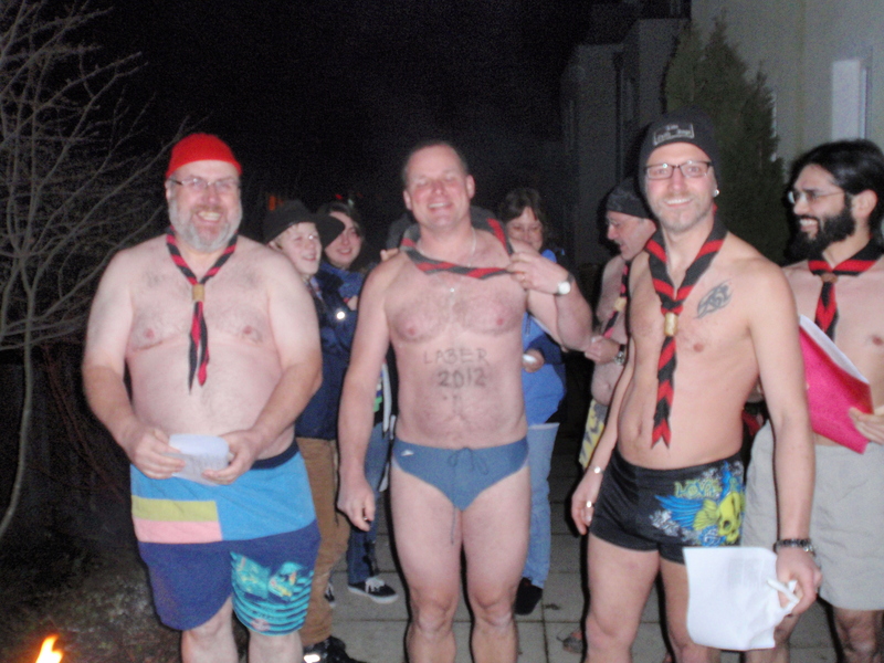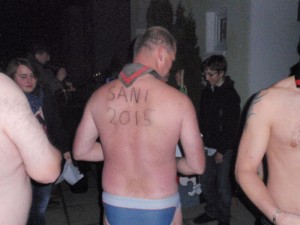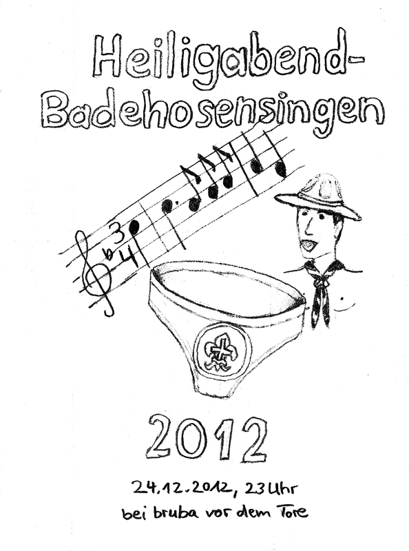 Allerdings kam dann alles anders. Kurz nach dem Stammesthing schickte er eine Mail an alle Mitarbeiter, in der er schrieb, dass er immer der Sani für den Stamm oder die Kochgruppe sei, aber den Sani nicht beim BuLa 2015 machen würde. Aber die Folgen des darauf folgenden kleinen Zusatzes, wird er nun ausbaden müssen. Denn er bot an, den Sanitätsdienst beim BuLa unter der Bedingung zu machen, dass die Stammesführung am 24.12.2012 am späten Abend nur in Badehose und mit Halstuch bekleidet vor seiner Türe alle Strophen von „Am Brunnen vor dem Tore“ singen würden. Tja, wir, als Stammesführung und auch die anderen Mitarbeiter, dachten uns, wenn es weiter nichts ist, dann kann er sich schon mal auf den Sanitätsdienst vorbereiten. Denn, was bruba vermutlich für unmöglich hielt, war für uns pure Gaudi und ein einfaches Mittel, ihn für diesen Dienst zu gewinnen.