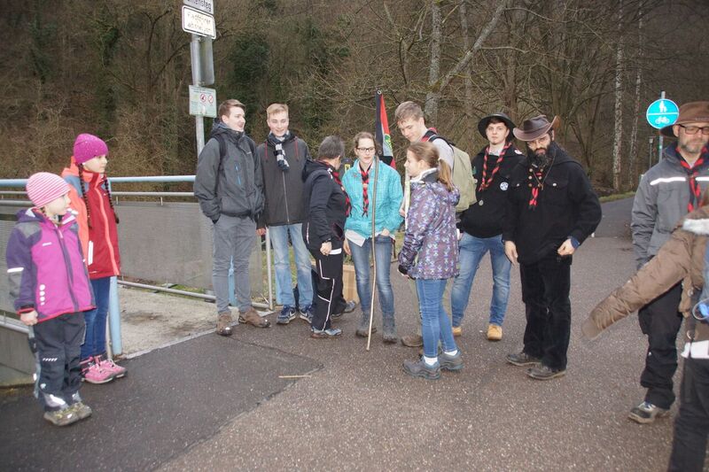 Fahnen gehisst und das Wasser zum Kochen gebracht. Als es Zeit war unsere Gäste und die Sipplinge am Treffpunkt abzuholen, machte sich ein Teil unserer Mitarbeiter auf dem Weg nach unten. Nach einer kurzen Begrüßung wurden bei beginnender Dämmerung die Fackeln entzündet. Bei einem Schweigemarsch wurden die Ausgesteckten die Versprechen vorgelesen.